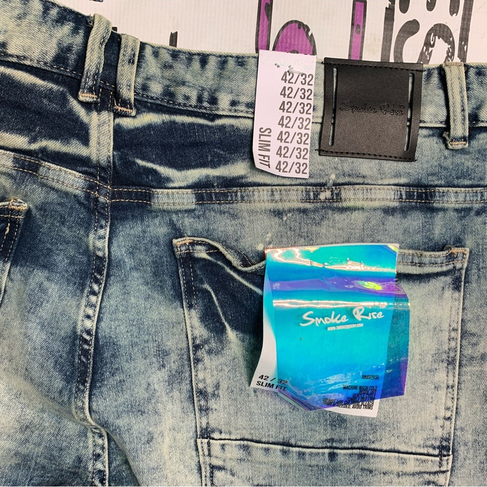 Men's Distressed Blue Jeans Sz 42/32 smoke rise